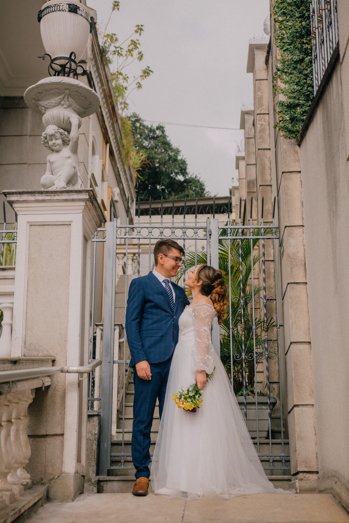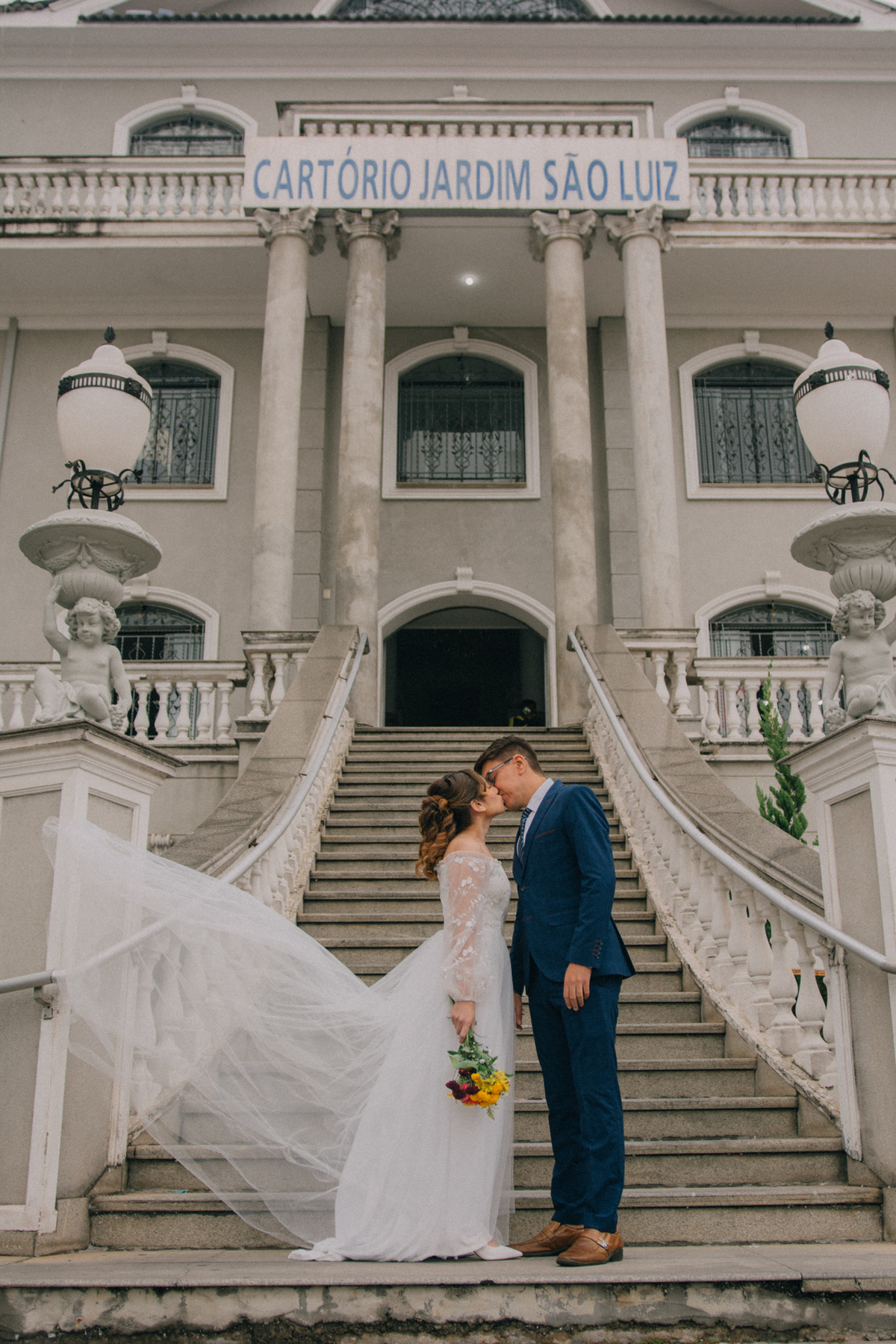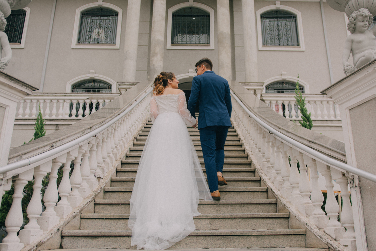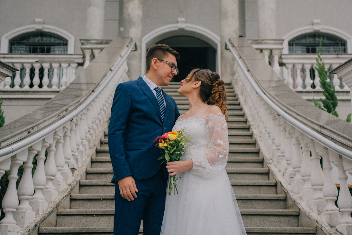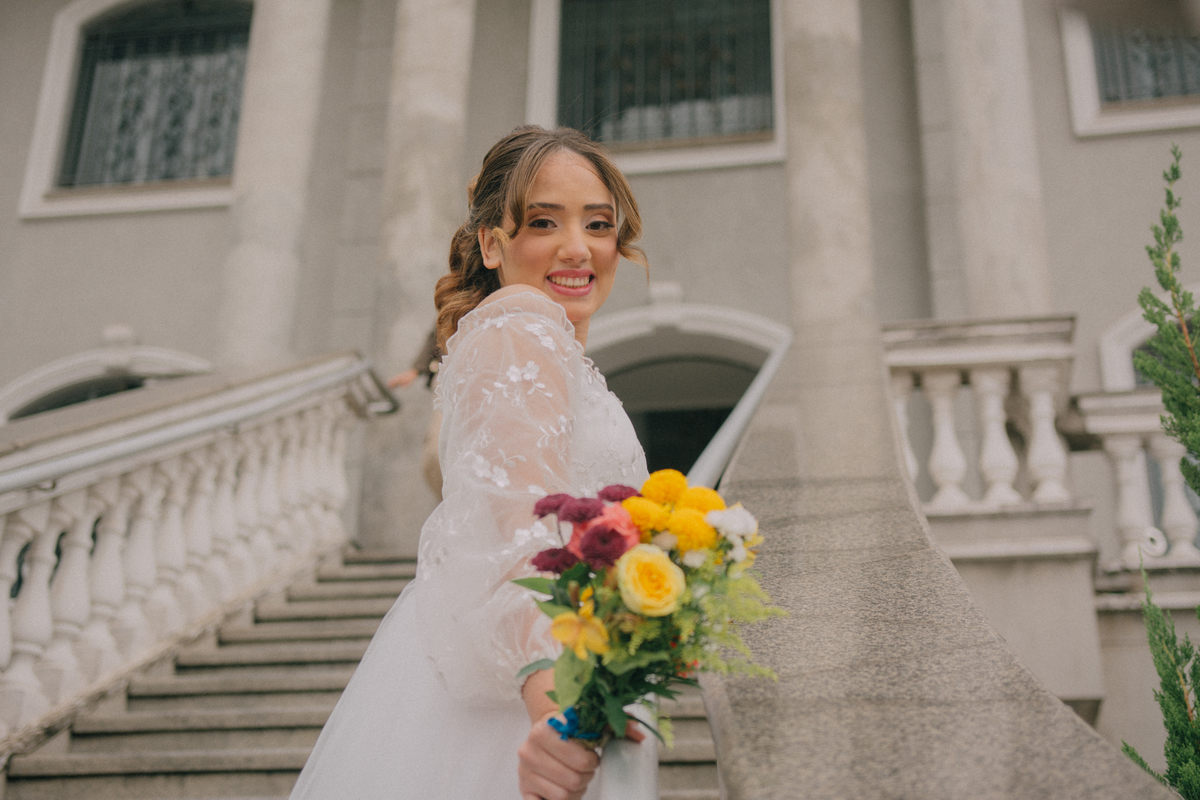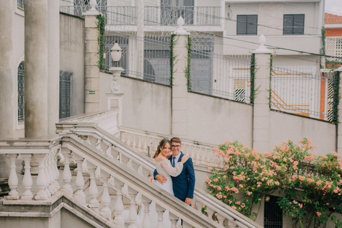 Beatriz e Lucas escolheram um cartório que poderia ser um castelo — uma locação encantadora, cheia de charme, que parecia ter saído de um sonho. Uma manhã nublada nos presentou com uma luz linda, ideal para nossa sessão de fotos. A chuva ameaçou, afinal estamos na terra da garoa, mas o sol venceu e nos presenteou com essa manhã belissima.