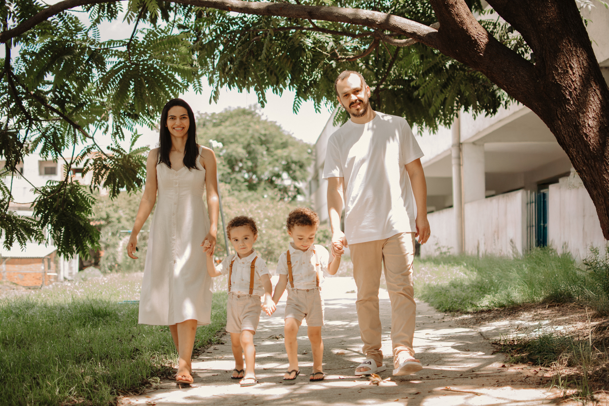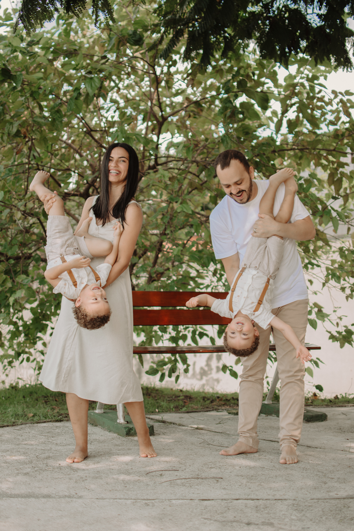 Cymarah e Douglas continuam apaixonados, radiantes e com muita energia, afinal os meninos vieram em dose dupla para agitar a vida e colorir a rotina dos dois. Os meninos não param um minuto, então fotografamos sem roteiro, apenas caminhando e aproveitando a espontaneidade da infância e os gestos de carinho naturais de um domingo leve em família.