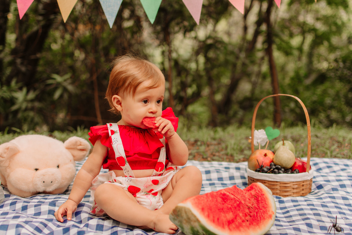 Nada melhor do que comemorar registrando uma das coisas que ela mais ama: comer frutinhas e passear no parque!